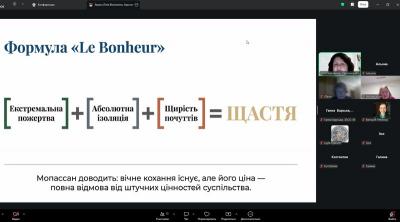 17 березня у по-весняному теплій та затишній атмосфері відбулася онлайн-зустріч читацького клубу «Новела», яка об’єднала поціновувачів літератури навколо глибокого й актуального твору – новели Гі де Мопассана «Щастя».