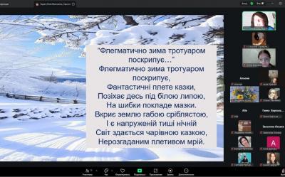 Зимова тиша поезії «Флегматично зима тротуаром поскрипує…» занурила присутніх у стан зосередженого споглядання, де ніч і мовчання стають паузою для народження думки, а світ – чарівною казкою, нерозгаданим плетивом мрій.