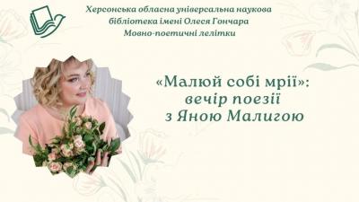 «Малюй собі мрії»: вечір поезії з Яною Малигою