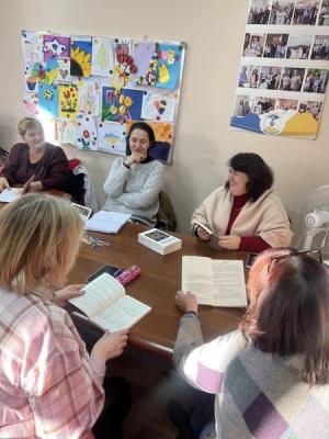 Однією зі спікерок зустрічі стала Лілія Віжічаніна – бібліотекарка Гончарівки, модераторка розмовних клубів ГО «Рух Єдині» для ВПО.